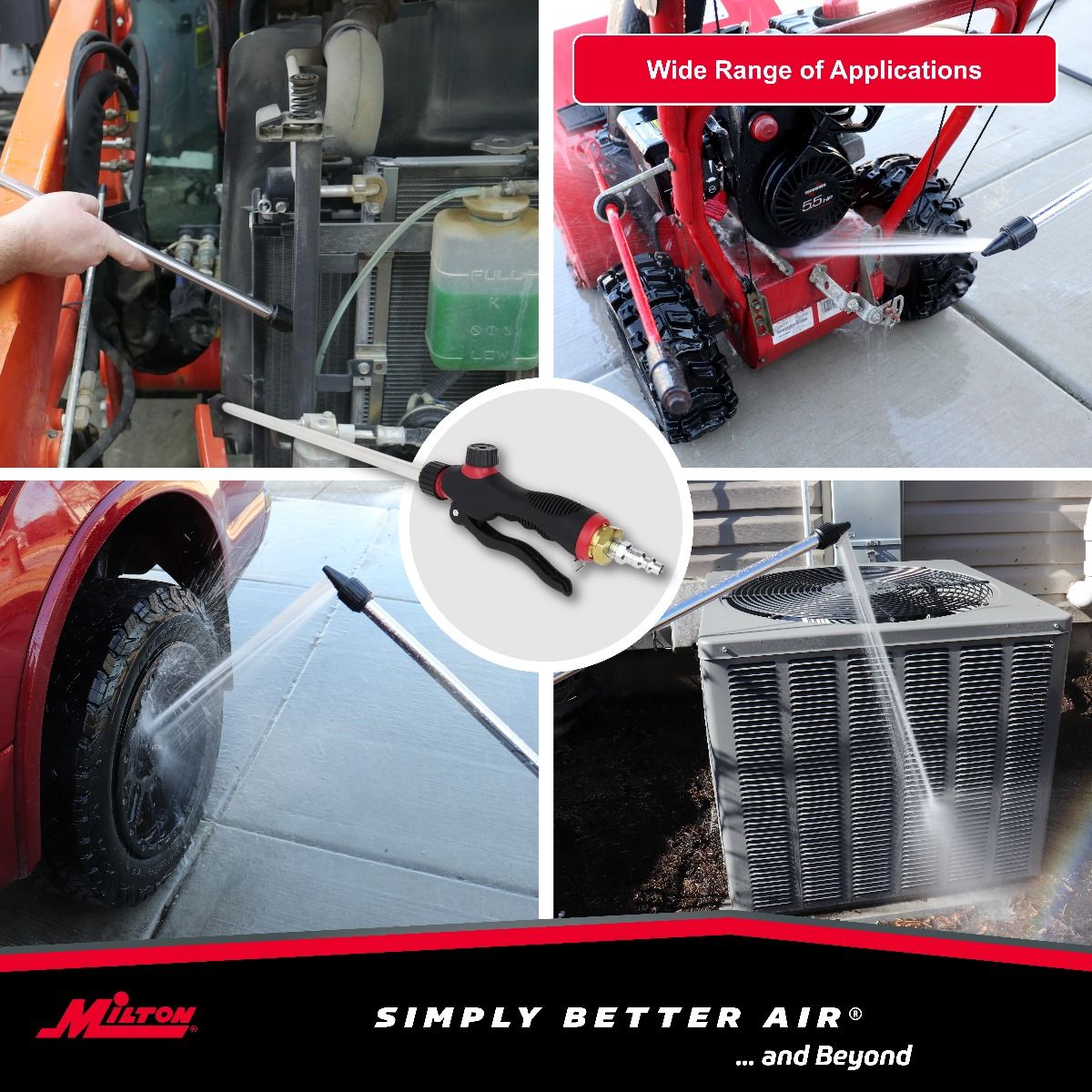 - EXTENDS LIFE ON EQUIPMENT: This equipment and engine air or water cleaner is great for any industry: agriculture, construction, automotive, industrial, stationary power and others that requires a powerful, multi-port nozzles to clean Radiator, Condenser, Machine Shop, Machinery, Agriculture and Heavy-duty vehicles